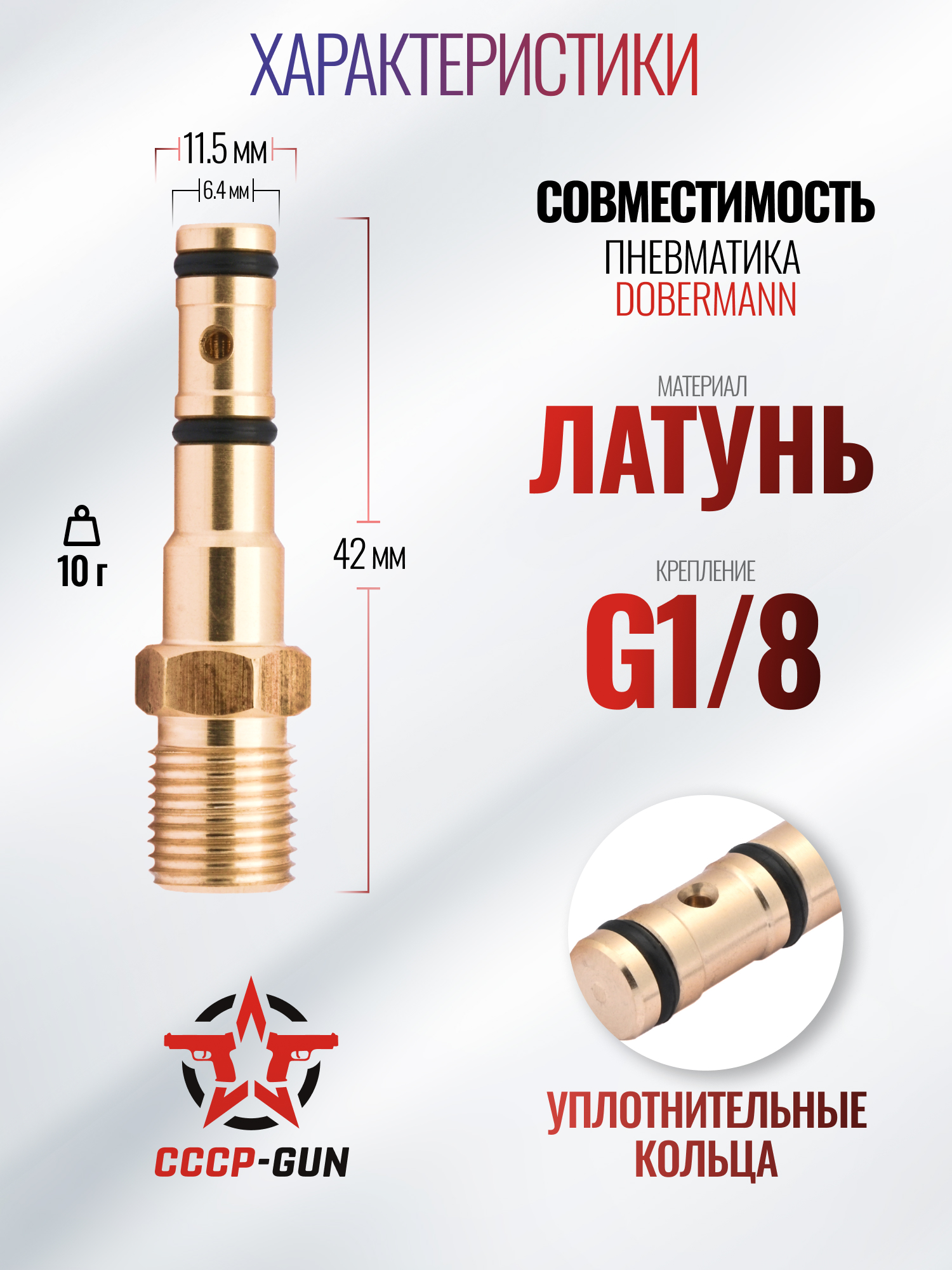 | Особенности конструкции | Резьбовое крепление G1/8, для PCP винтовок и пистолетов Dobermann, диаметр - 6.4 мм |