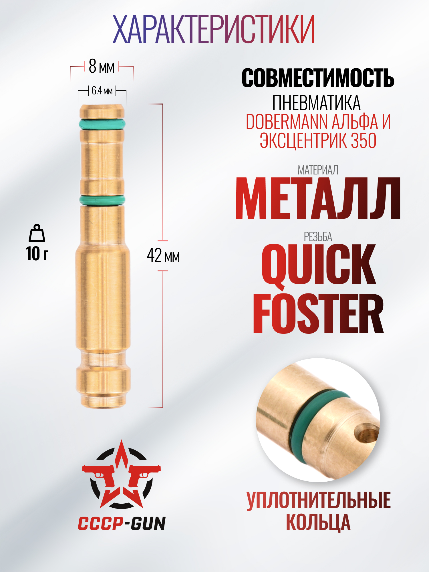 Рассматриваемый штуцер SM-1490-A выступает решением для обладателей как пневматических винтовок Dobermann, так и пистолетов Эксцентрик 350. Функциональное назначение переходника - создание соединения между насосами ВД и емкостью для хранения сжатого воздуха. Одной стороной обозреваемый элемент фиксируется в самом оборудовании для заполнения, а другим концом с диаметром 6.4 миллиметра вводится в порт резервуара.