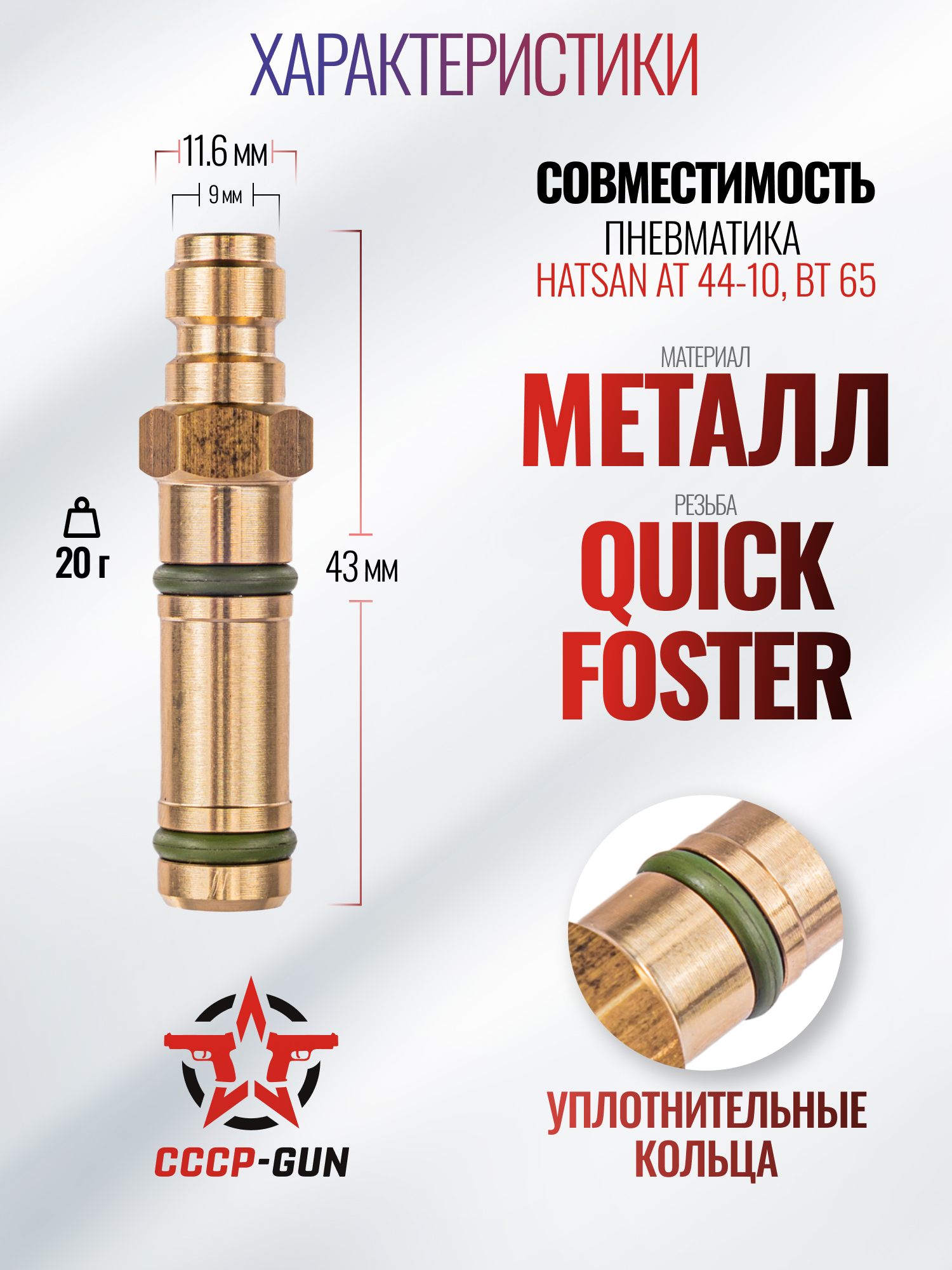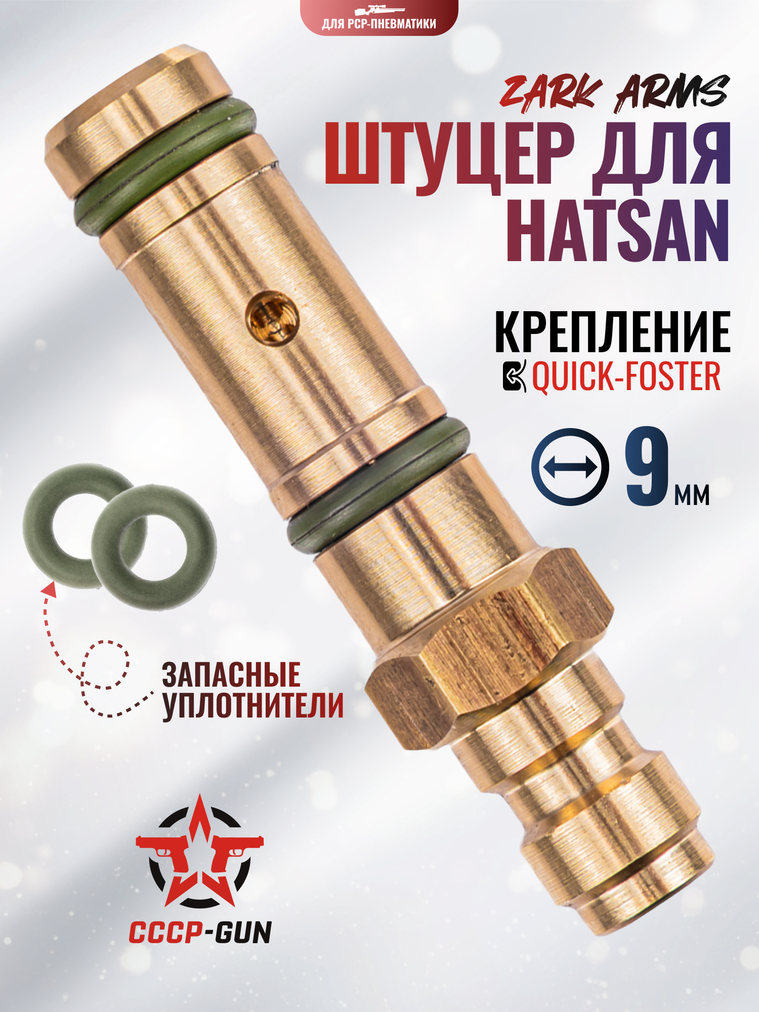 Обозреваемый заправочный штуцер Hatsan Zark Arms при подсоединении к порту и шлангу насоса предотвращает утечку газа благодаря наличию в конструкции уплотнительных элементов из резины. Представленный адаптер принадлежит к категории быстросъемных устройств и подсоединяется к устройствам для нагнетания воздуха посредством системы Quick-Foster - подобная схема ускоряет процесс монтажа при эксплуатации нескольких образцов оружия.