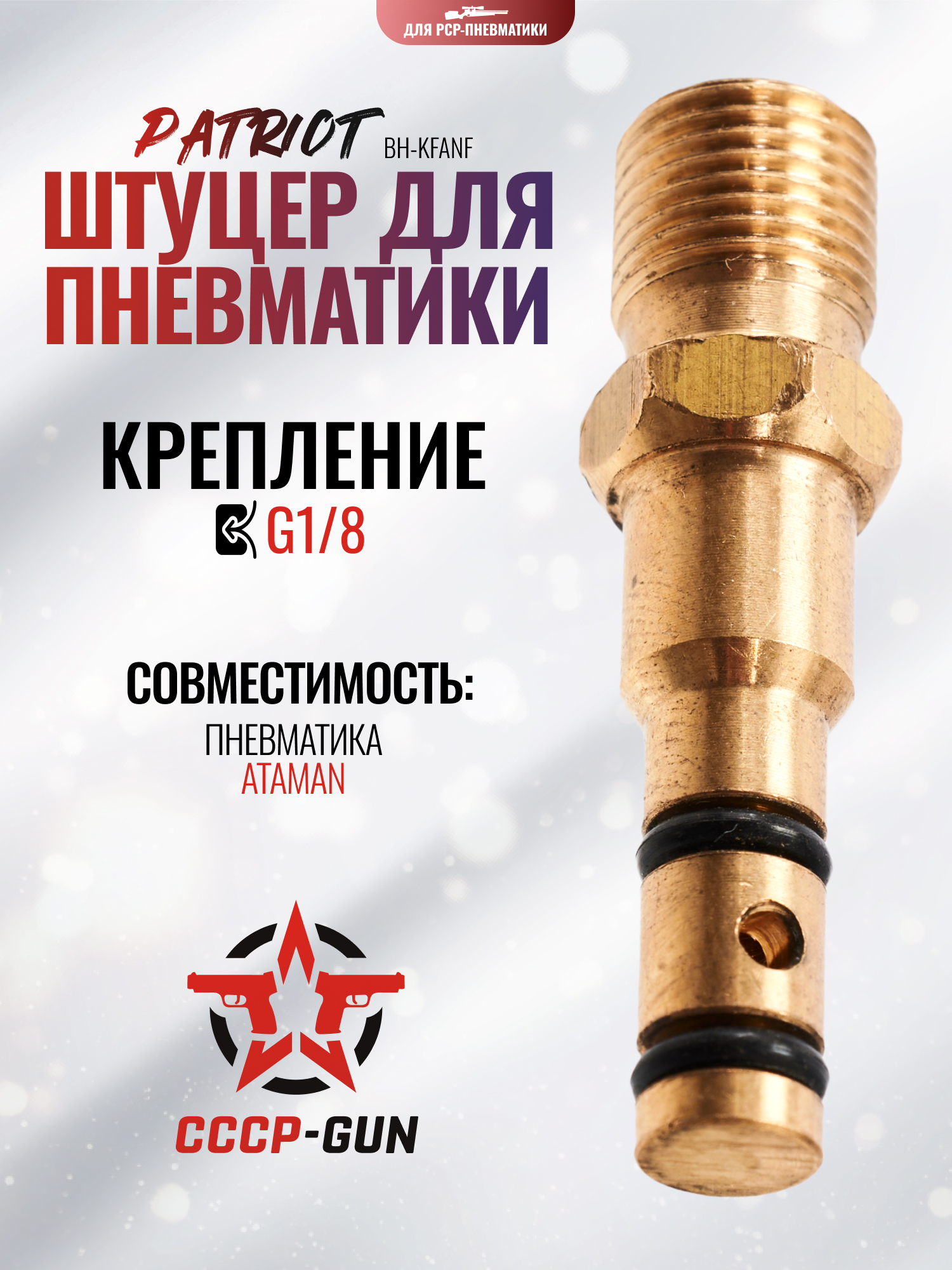 Обозреваемый штуцер Патриот BH-KFAN предназначен для заправки российских винтовок Ataman. Он выполнен с резьбой типа «Папа» G1/8, которая позволяет вкрутить изделие в шланг насоса.