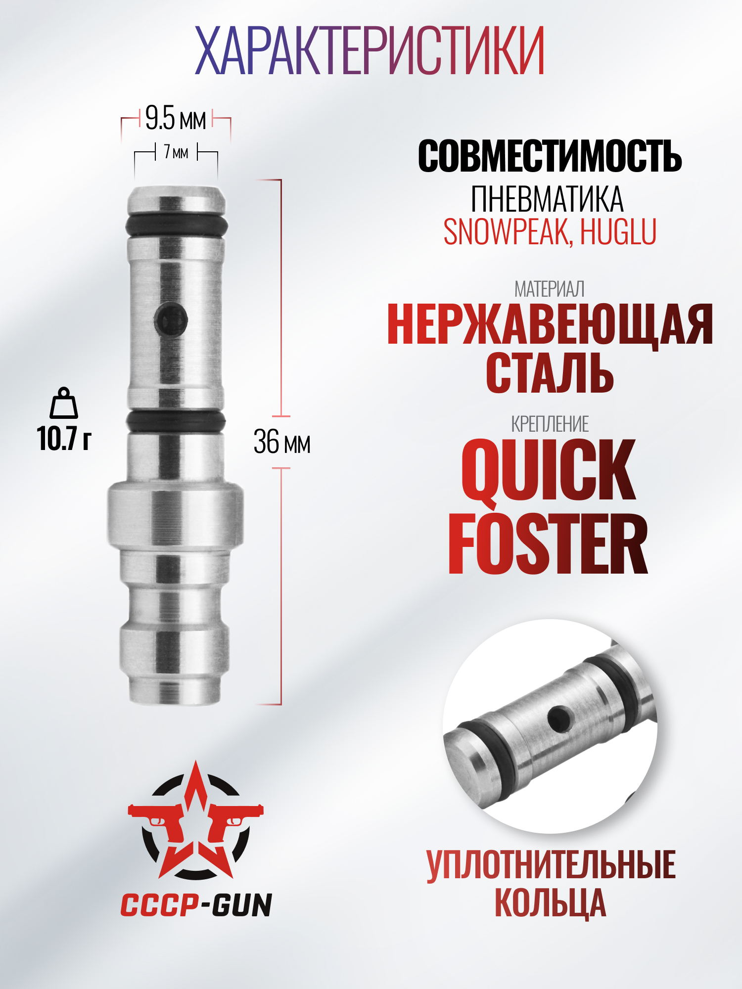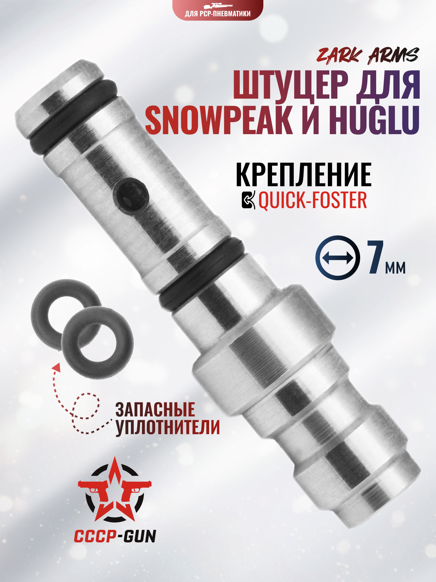 Упомянутый адаптер не в каждой комплектации поставляется вместе с оружием, а также может быть утрачен в ходе эксплуатации пневматики. Подбор заменяющего изделия предлагает компания Зарк Армс, выпускающая вспомогательные приспособления для «воздушек». Фирма специально для моделей от Snowpeak и Huglu представила рассматриваемый штуцер.