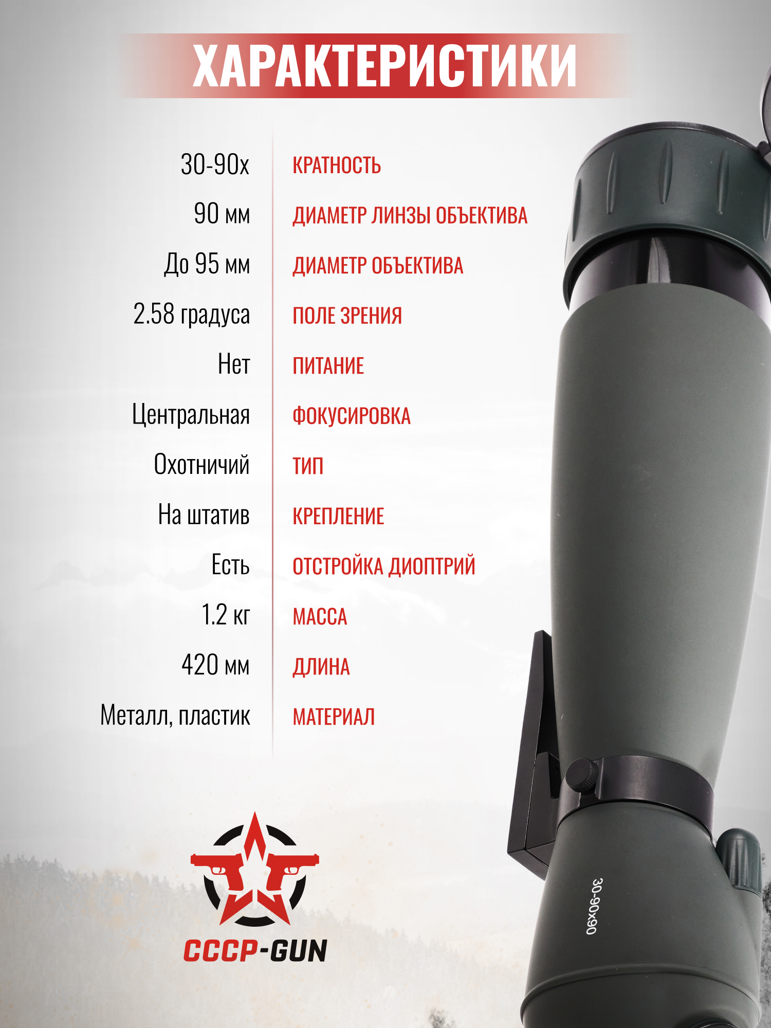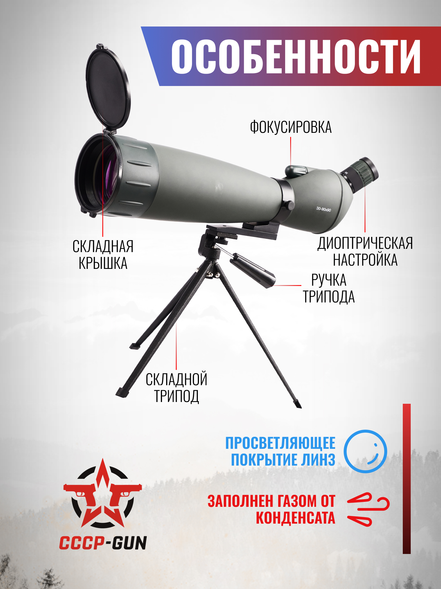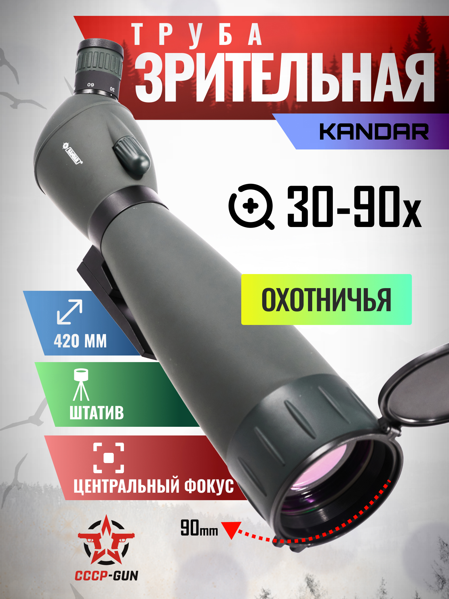 Зрительная труба Kandar 30-90x90 (BH-MB309, адаптер, штатив)